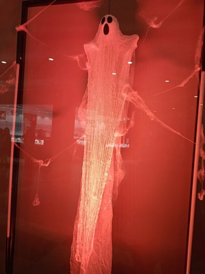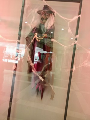 En sortant de la pharmacie mercredi après midi dernier j'ai aperçu cette vitrine décorée pour Halloween,
